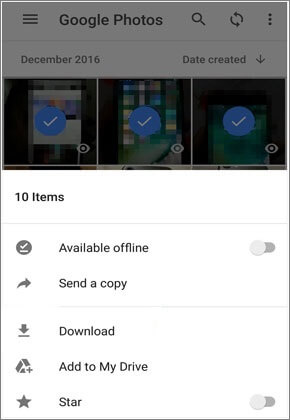 Step 3. After selecting the photo, click on the menu symbol and select "Download" to download photos from Google Photos to the computer gallery.