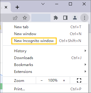 Paso 2. Haz clic en el icono de los 3 puntos en la esquina superior derecha de la pantalla de tu teléfono. Selecciona la opción "Nueva ventana de incógnito" entre las opciones disponibles y se abrirá una nueva ventana privada.