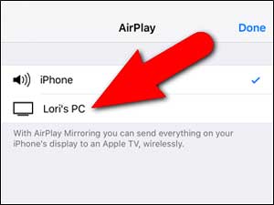 Now you will get back to Control Center, noticing the the name of LonelyScreen AirPlay receiver appears on the Control Center where AirPlay stays. And also with the LonelyScreen AirPlay receiver connected on your iPhone or iPad, now whatever you do on your iOS device will display on your PC's screen, including playing music and videos.