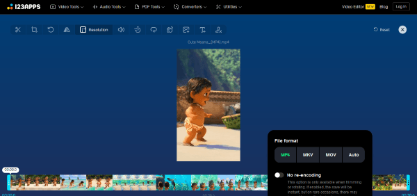 123APPSによるオンラインビデオリサイザーは、低解像度のビデオを修正するのに役立つ別のWebベースのツールです。それはあなたがファイルの品質を損なうことなくビデオサイザーを変更することを可能にします。このオンラインビデオリサイザーを使用するのに経験や編集スキルは必要ありません。