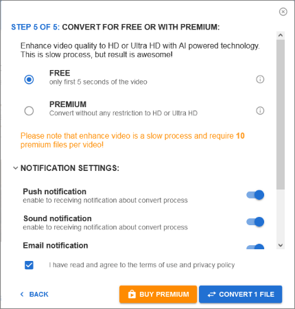 ただし、このオンラインビデオエンハンサーからより多くのプレミアム機能にアクセスしたい場合は、プレミアムを購入する必要がある場合があります。