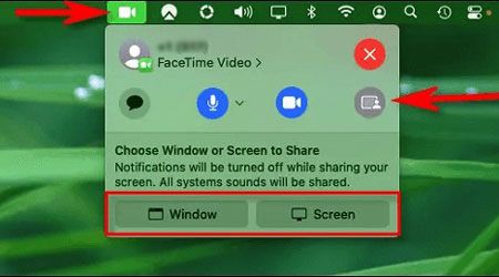 Step 2: To share your screen during a FaceTime call, click the video button in the top right corner of your display and choose "Screen Share".