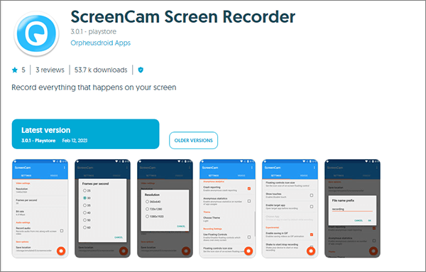 ScreenCam Screen Recorder, developed by Orpheusdroid Apps, is an excellent tool for those who like to take screenshots alongside their screen recordings. ScreenCam Screen Recorder is a user-friendly Android app that lets you capture high-quality screen recordings without watermarks. It offers features like pausing and resuming recordings, adding a facecam, and basic video editing. Perfect for gaming, tutorials, or sharing mobile experiences.